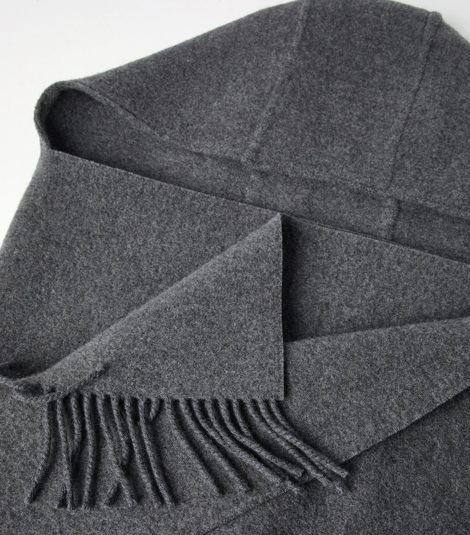 Crafted in wool and cashmere, Brunello Cucinelli’s hooded scarf offers both comfort and definition. The fringed hem softens the silhouette, while the hood introduces a protective element, creating a piece that balances practical function with the House’s commitment to understated refinement and tactile excellence.