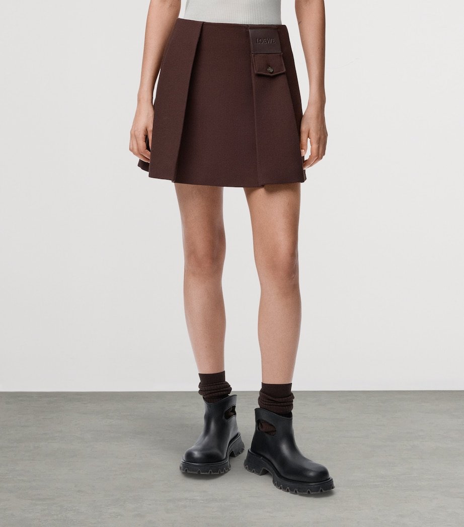 Any fashion maven can concur that a mini skirt will be the preppy finishing touch to their most impactful city ensembles, and LOEWE makes a strong case for that with this iteration. Rendered from sumptuous wool, the pleated design is complete with a logo leather patch and an array of pockets for utilitarian flair.