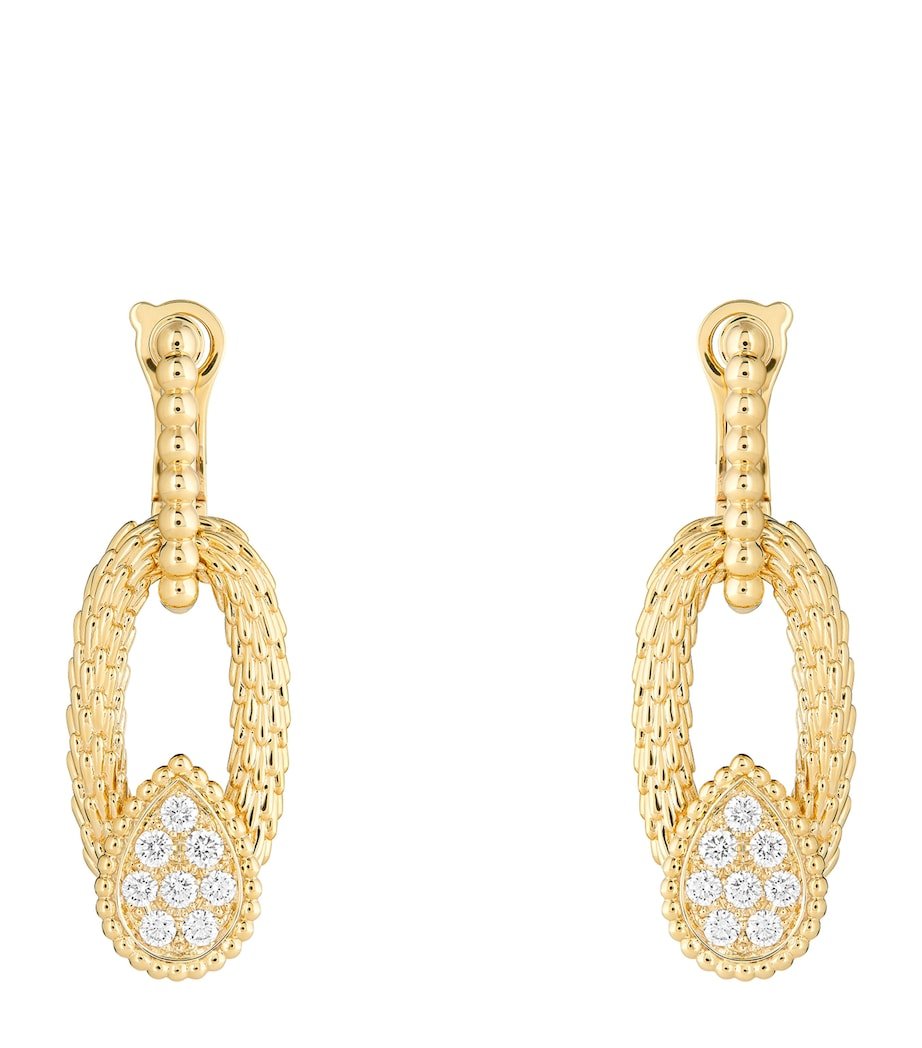 Protective symbols, carefree feminine spirit, transformative power – whichever way you interpret the themes behind Boucheron’s Serpent Bohème Vintage collection, there is no denying their ability to captivate. These 18-karat drop earrings from the Parisian jeweller see yellow gold links punctuated by two teardrop-shaped motifs that evoke the head of a snake, each resplendent in glistening diamonds.