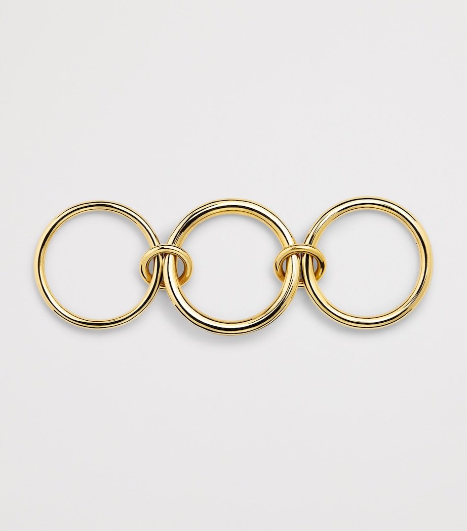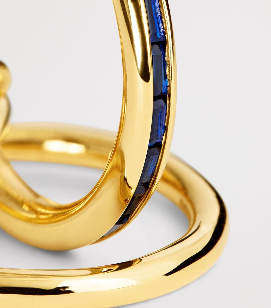 Clean, conceptual and innovative are three keywords that come up time and again in describing the Spinelli Kilcollin universe – and the Pyrus ring is no exception. It comprises three bands crafted from 18-karat yellow gold including a central rendition encrusted with channel-set sapphires, with two matching orbiting connectors on either side.