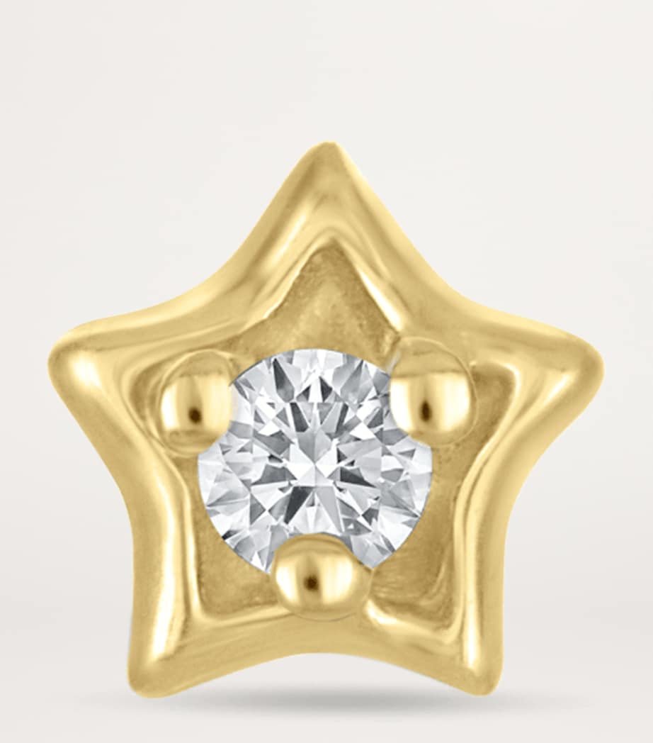 MARIA TASH speaks to the rebels of the jewellery world, conceptualising unique pieces to be worn in all manner of piercings, each elevated by her use of fine materials, precious gems and expert crafting. Inspired by the night sky, this celestial threaded stud is a minimalist offering, with the nickel-free and hypoallergenic 14-karat yellow gold setting punctuated by a petite solitaire diamond to the heart of the star.Please note: For threaded studs, post sizing other than 6.5mm can be requested through Customer Service.