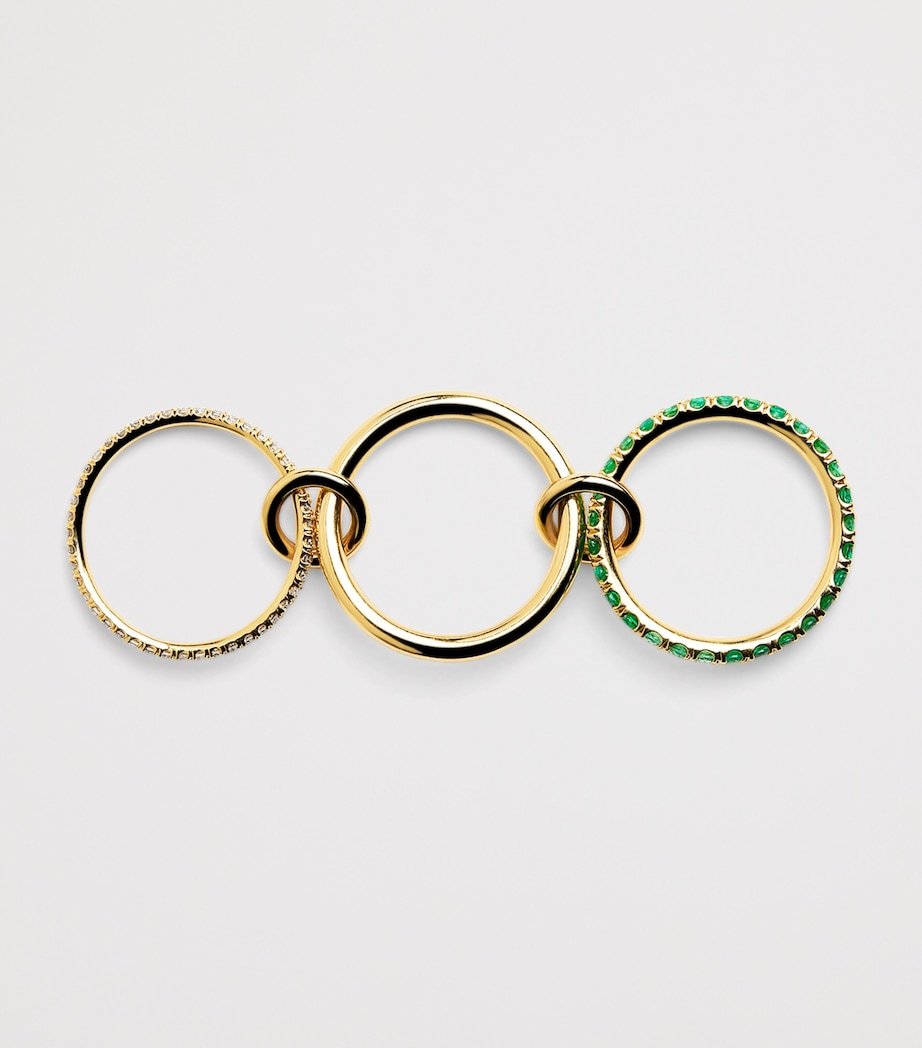 Spinelli Kilcollin is a name synonymous with interlocking rings – a style borne from its founder’s fascination with fluidity and deconstruction. With the Norah, three bands bring their own distinct personality to the piece with pink diamonds, vibrant emeralds and solid yellow gold lending each a unique finish.